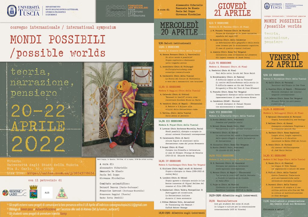 Entre otras actividades, he podido asistir al congreso «Mondi possibili», al que han asistido destacados especialistas, pero también estupendos amigos hispanistas. Prueba de ello es el cartel, de un diseño que me ha gustado mucho mucho: